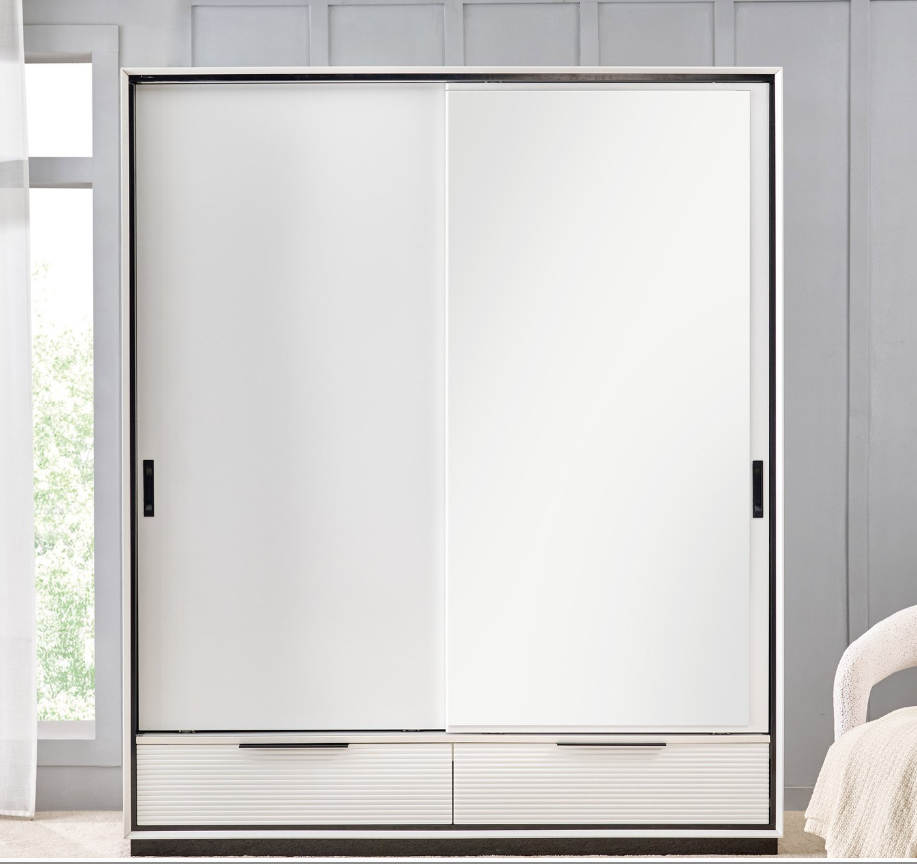 Thoughtfully designed for organized living, it features 10 spacious shelves, 2 hanging rods, 2 external drawers, and 2 lockable drawers to safely store valuables. The full-length mirror on the sliding door adds practicality while enhancing the room’s sense of space and light.