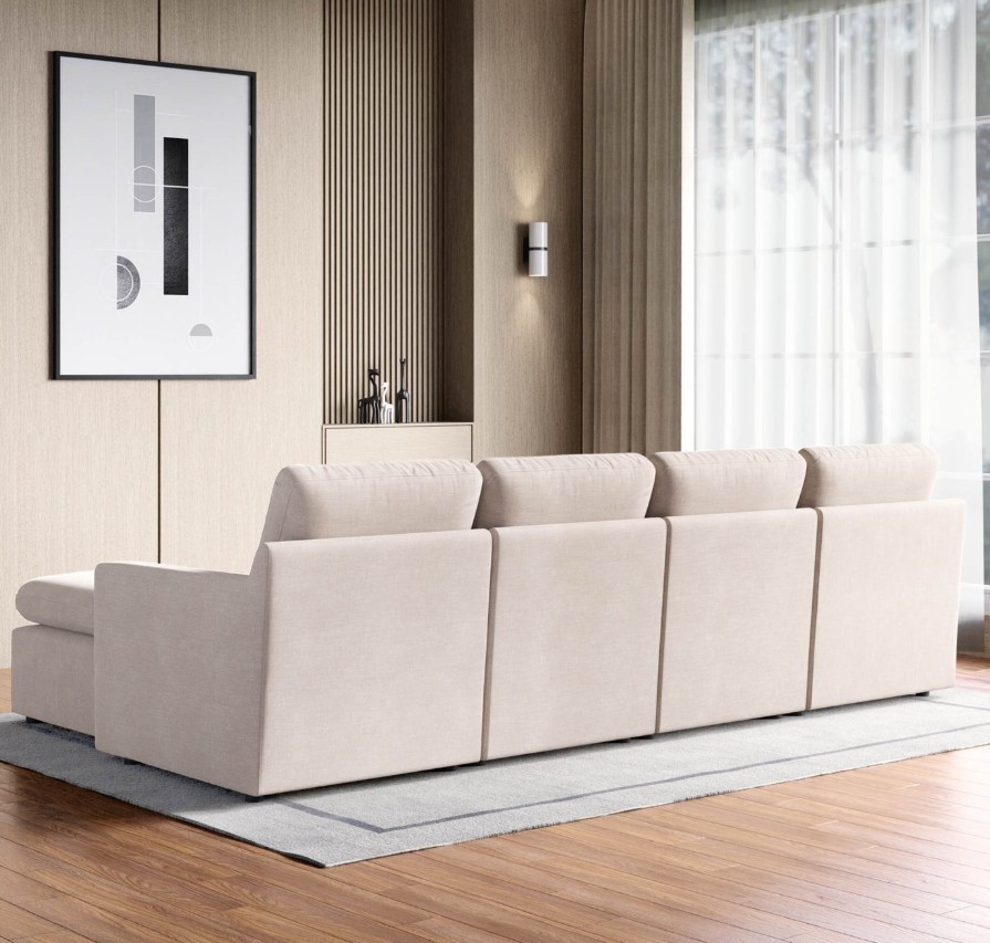 Experience ultimate comfort and style with Home Centre's 4-seater sofa with ottoman.Built on a sturdy pine wood frame and upholstered in plush polyester,it features HDR PU foam and feather down for a luxurious sink-in seating experience.Elastic webbing straps provide excellent support while cushions maintain the sofa’s shape.Add elegance and comfort to any living space.