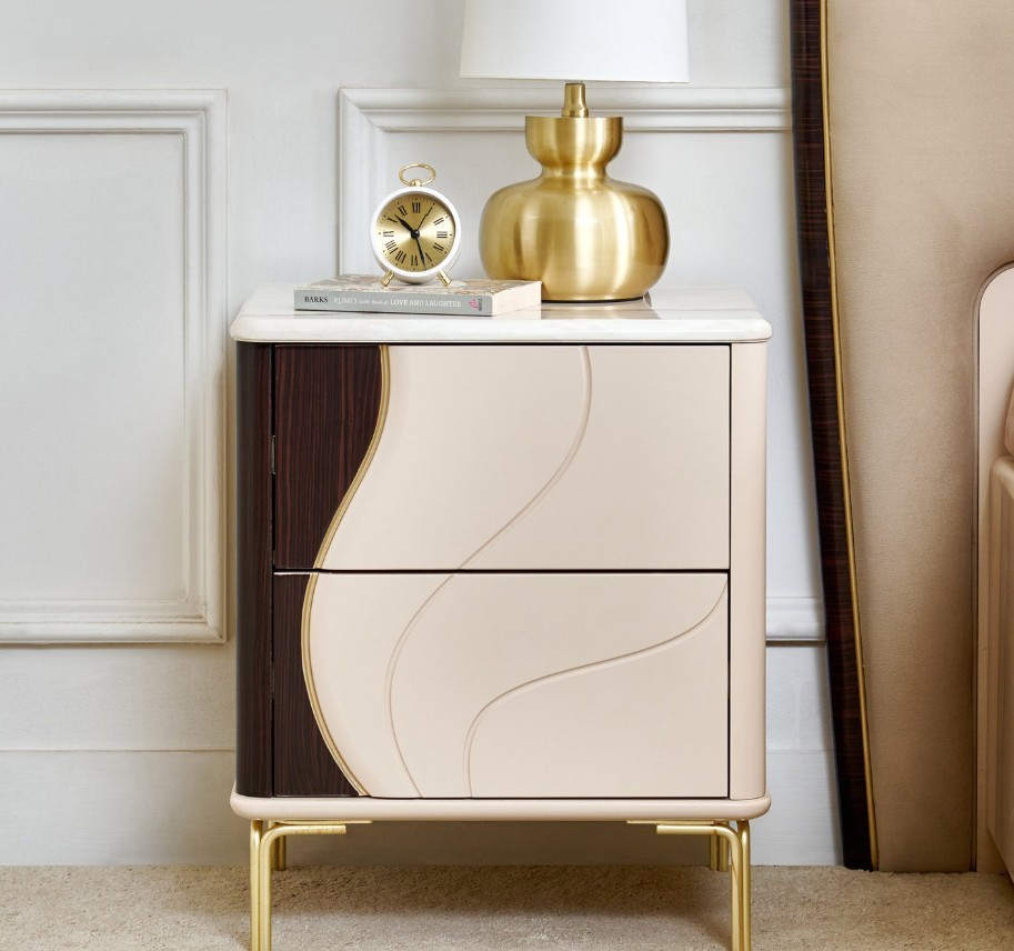 Add elegance to your bedroom with this bedside table crafted from engineered wood featuring a lacquer finish and matte PU paint. It offers durability, termite resistance, and two push-to-open drawers for convenient, stylish storage, while the top surface is perfect for lamps, phones, or decor.