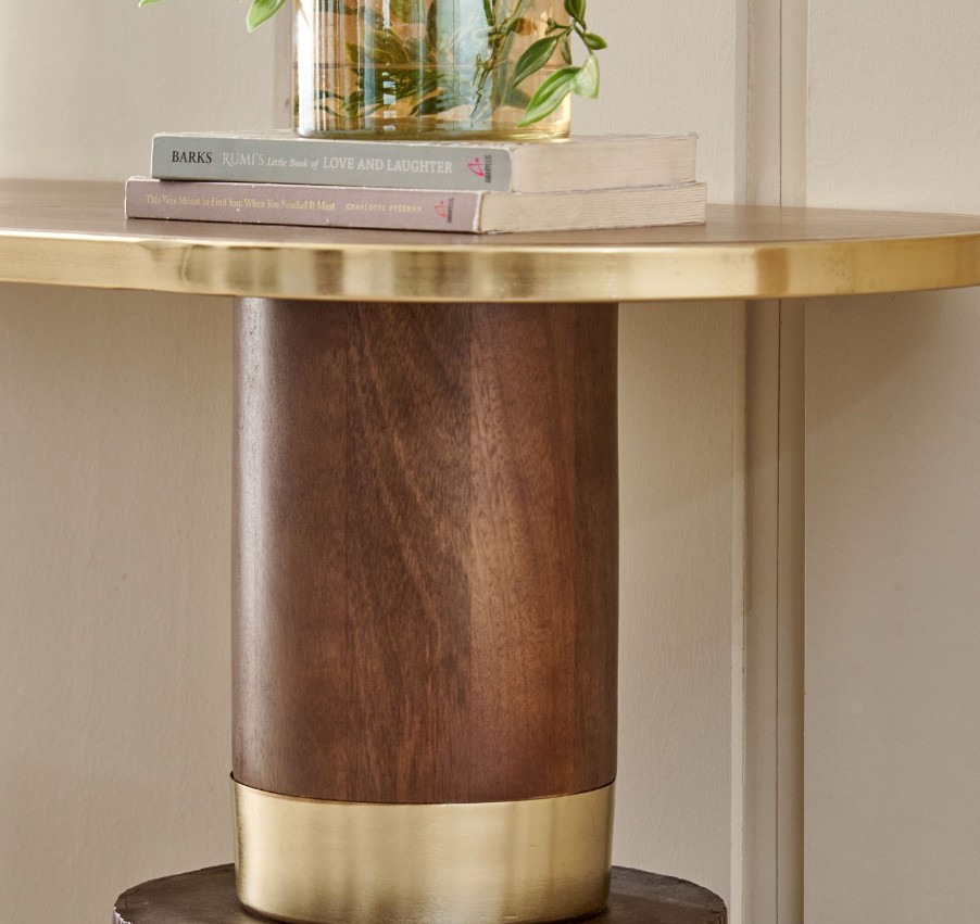 Add elegance and functionality to your home with this stylish console table. Crafted from kiln-dried, chemically treated mango wood, it offers durability and resistance to seasonal changes. Laminated wooden legs provide strong support, while electroplated gold steel accents give it a refined, modern touch—perfect for entryways, living rooms, or dining areas.