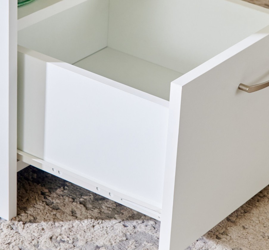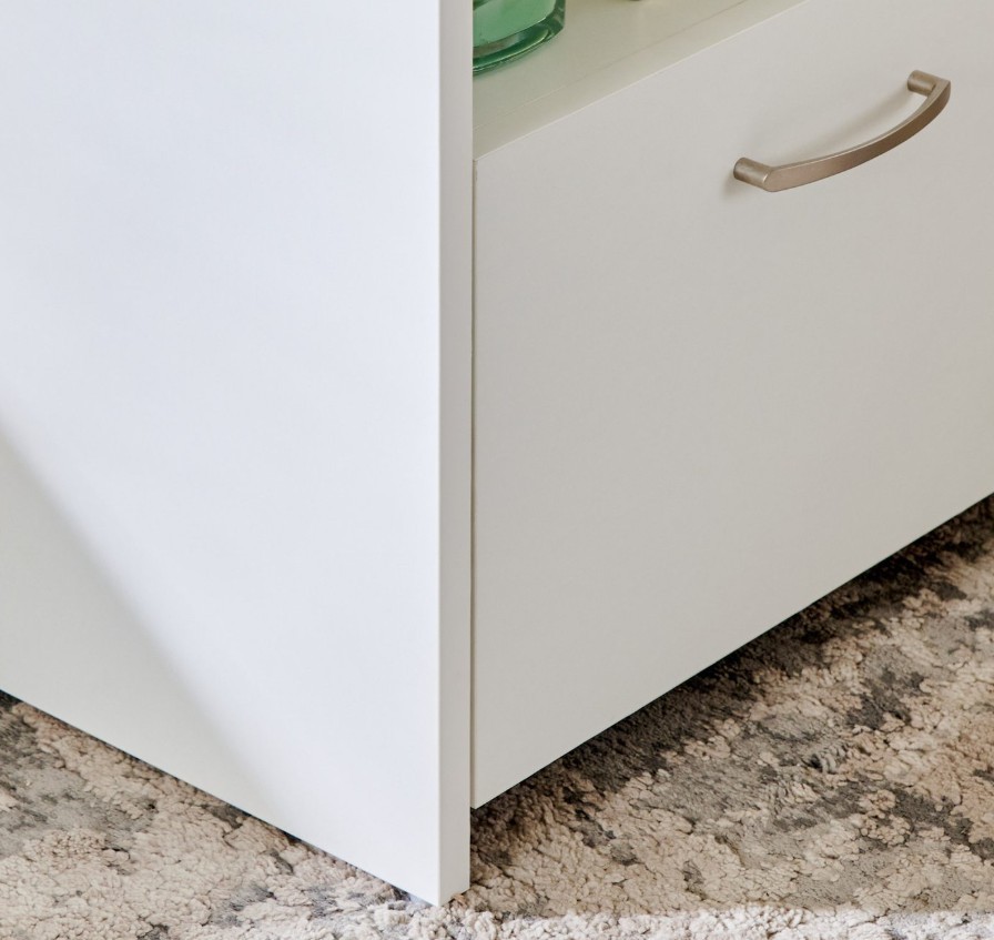 Transform your bedroom with this stylish dresser made from durable engineered wood with a protective melamine finish. It features a 4mm mirror for a clear full-length view, along with convenient shelves and a drawer to neatly organise cosmetics and accessories.