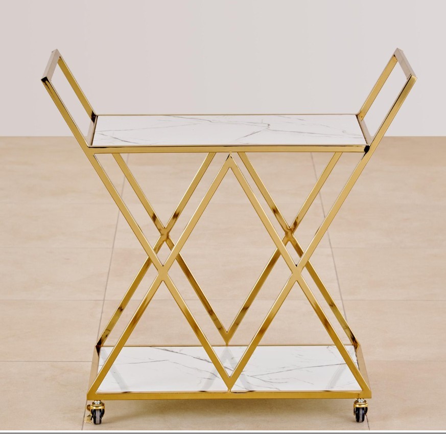 Add a luxe touch to your home with this elegant serving trolley. Featuring a durable mild steel frame, it includes thermally processed glass top and shelf that resist heat, scratches, and breakage. Designed with top handles and smooth wheels for easy movement, it’s perfect for serving and displaying food and drinks