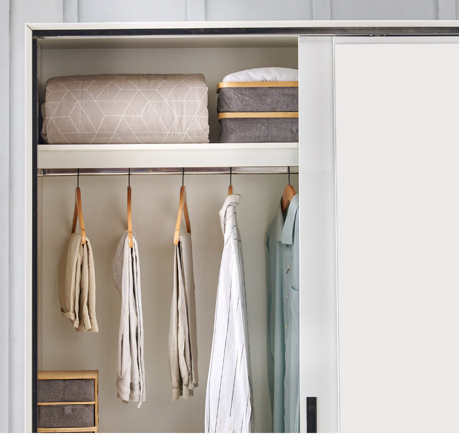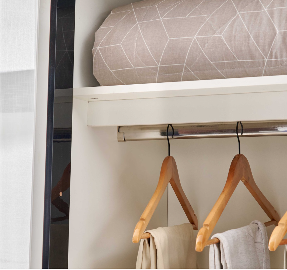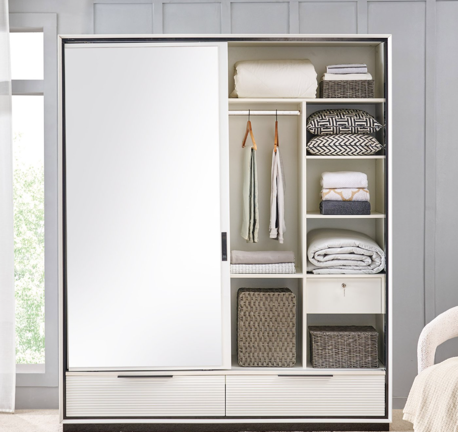 Thoughtfully designed for organized living, it features 10 spacious shelves, 2 hanging rods, 2 external drawers, and 2 lockable drawers to safely store valuables. The full-length mirror on the sliding door adds practicality while enhancing the room’s sense of space and light.