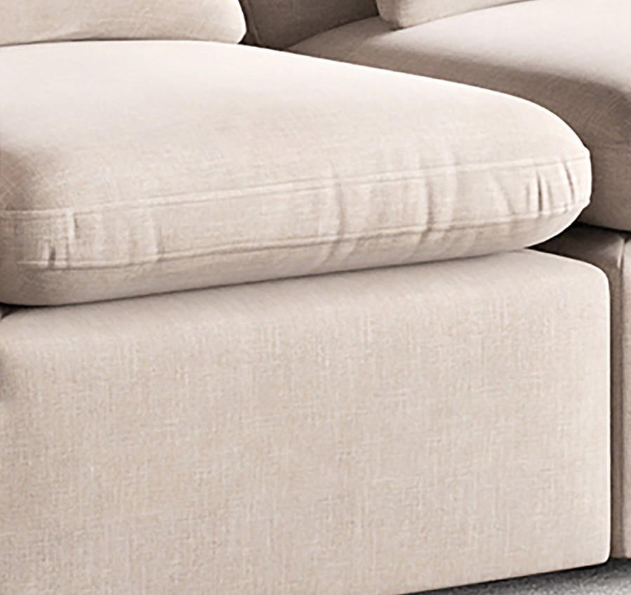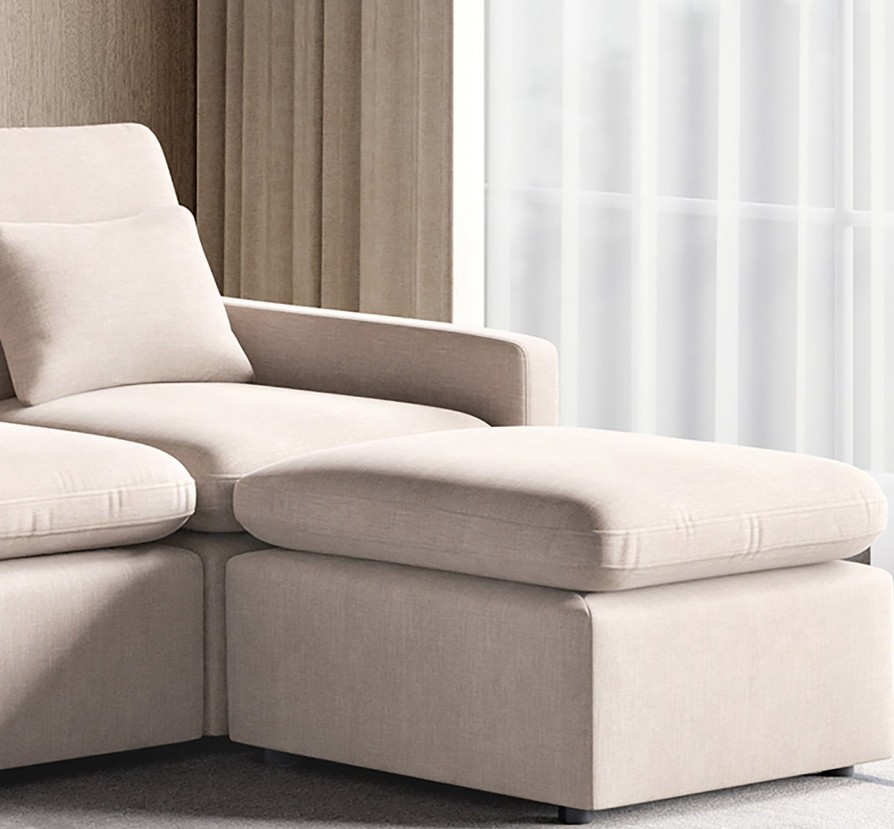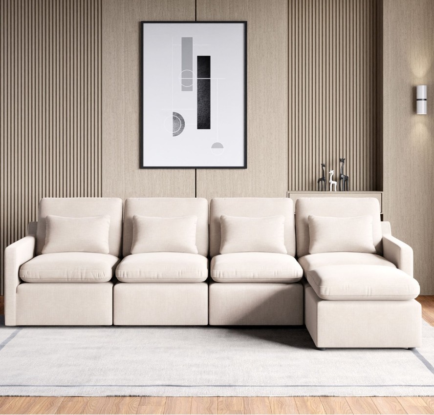 Experience ultimate comfort and style with Home Centre's 4-seater sofa with ottoman.Built on a sturdy pine wood frame and upholstered in plush polyester,it features HDR PU foam and feather down for a luxurious sink-in seating experience.Elastic webbing straps provide excellent support while cushions maintain the sofa’s shape.Add elegance and comfort to any living space.