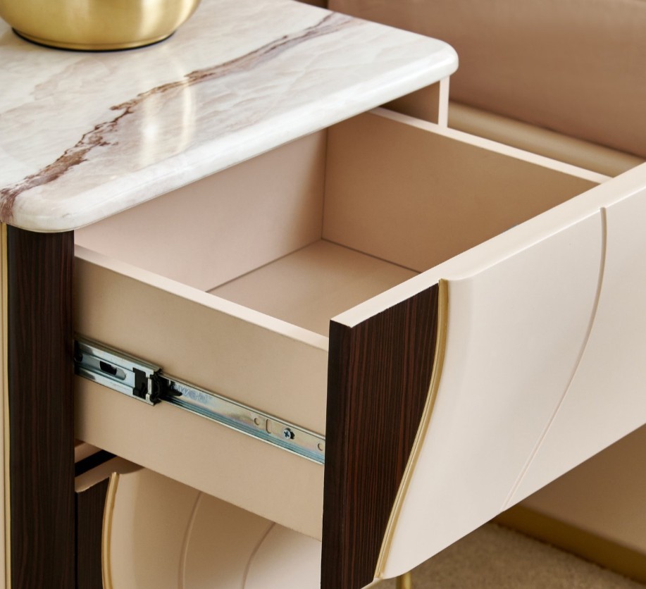 Add elegance to your bedroom with this bedside table crafted from engineered wood featuring a lacquer finish and matte PU paint. It offers durability, termite resistance, and two push-to-open drawers for convenient, stylish storage, while the top surface is perfect for lamps, phones, or decor.