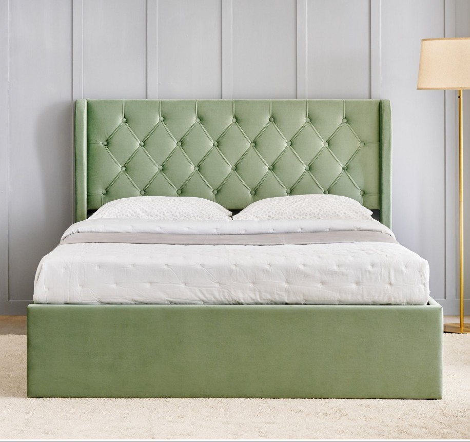 Upgrade your bedroom with this stylish and practical king-size bed. Made from durable engineered wood, it is designed to resist termites and borer damage for long-lasting use. The soft velvet upholstery adds a comfortable and elegant touch.