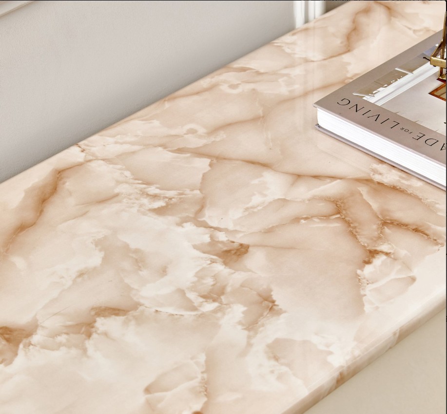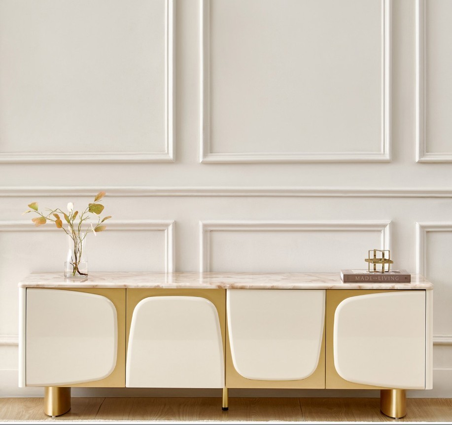 Add modern sophistication to your living space with this TV unit made from durable MDF with a smooth lacquer finish. It features a heat-resistant faux marble top and 4 spacious shelves, combining elegant design with practical storage.