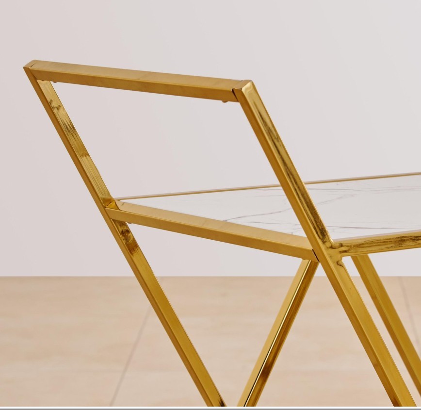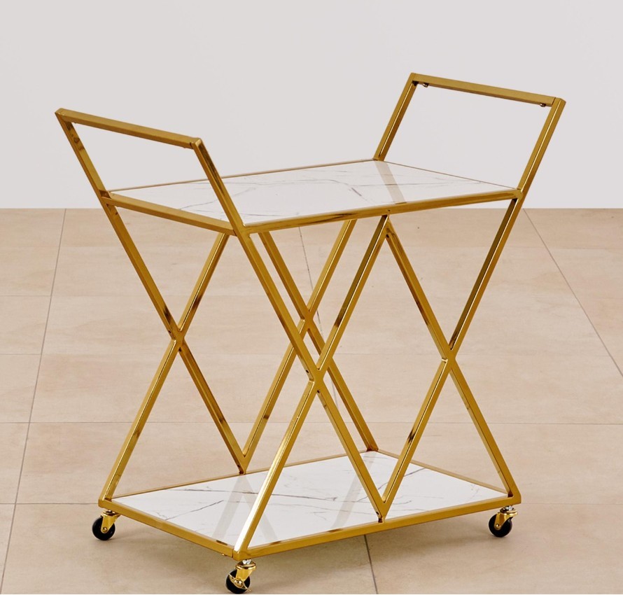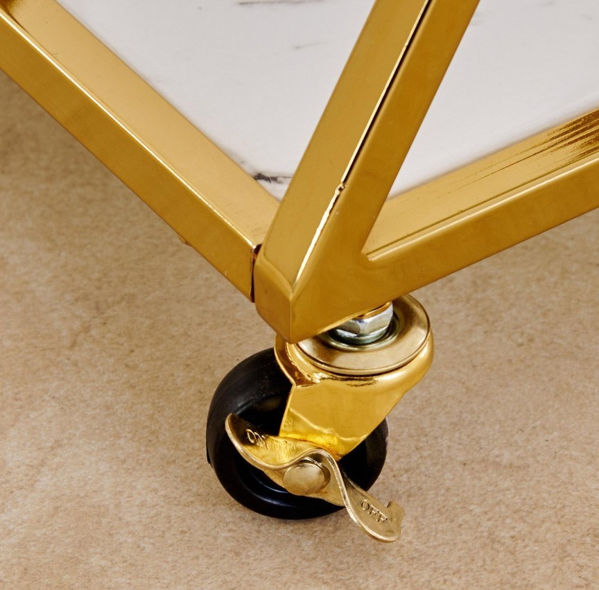 Add a luxe touch to your home with this elegant serving trolley. Featuring a durable mild steel frame, it includes thermally processed glass top and shelf that resist heat, scratches, and breakage. Designed with top handles and smooth wheels for easy movement, it’s perfect for serving and displaying food and drinks